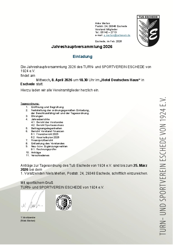 Wir freuen uns, Sie beim Internetauftritt des TuS Eschede begrüßen zu dürfen.